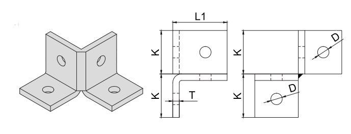 - Montážní úhelník s 2x2 otvory, rohový, 38–90°st., pozink