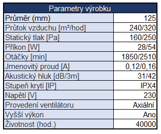 - Ventilátor AP 125 PLUS se zvýšeným výkonem