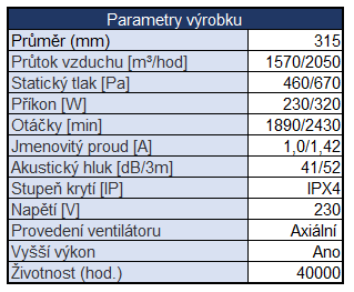 - Ventilátor AP PROFI 315 se zvýšeným výkonem