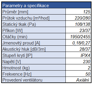- splňuje nároky na vyšší průtok vzduchu až 280 m3/h