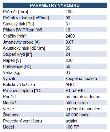 - Ventilátor do koupelny FP 100