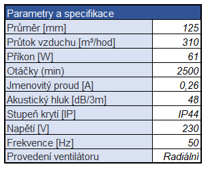 Hlavní výhody ventilátoru FEL 125 KQ: