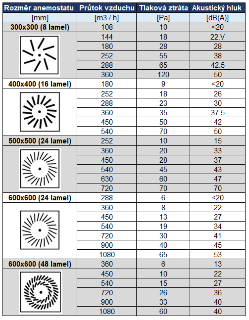 - Difuzory, Anemostaty