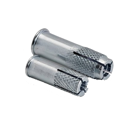 Ocelová kotva s vnitřním závitem a rozpěrným čepem. Aplikace pomocí ručního zarážecího nástroje.
