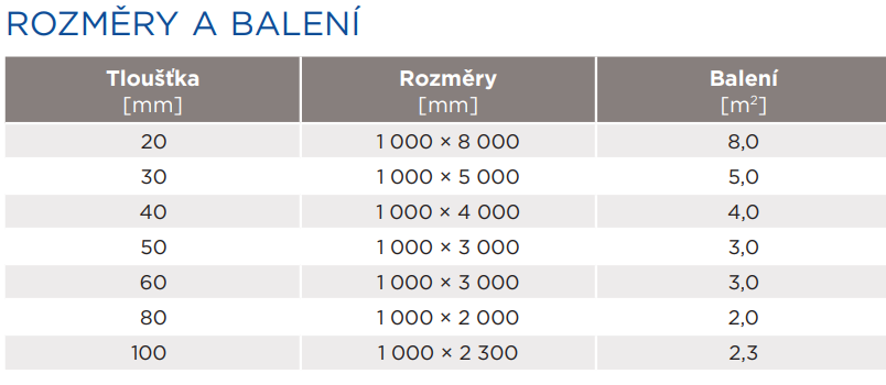 - Objemová hmotnost: 40 kg/m3