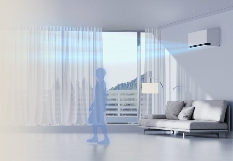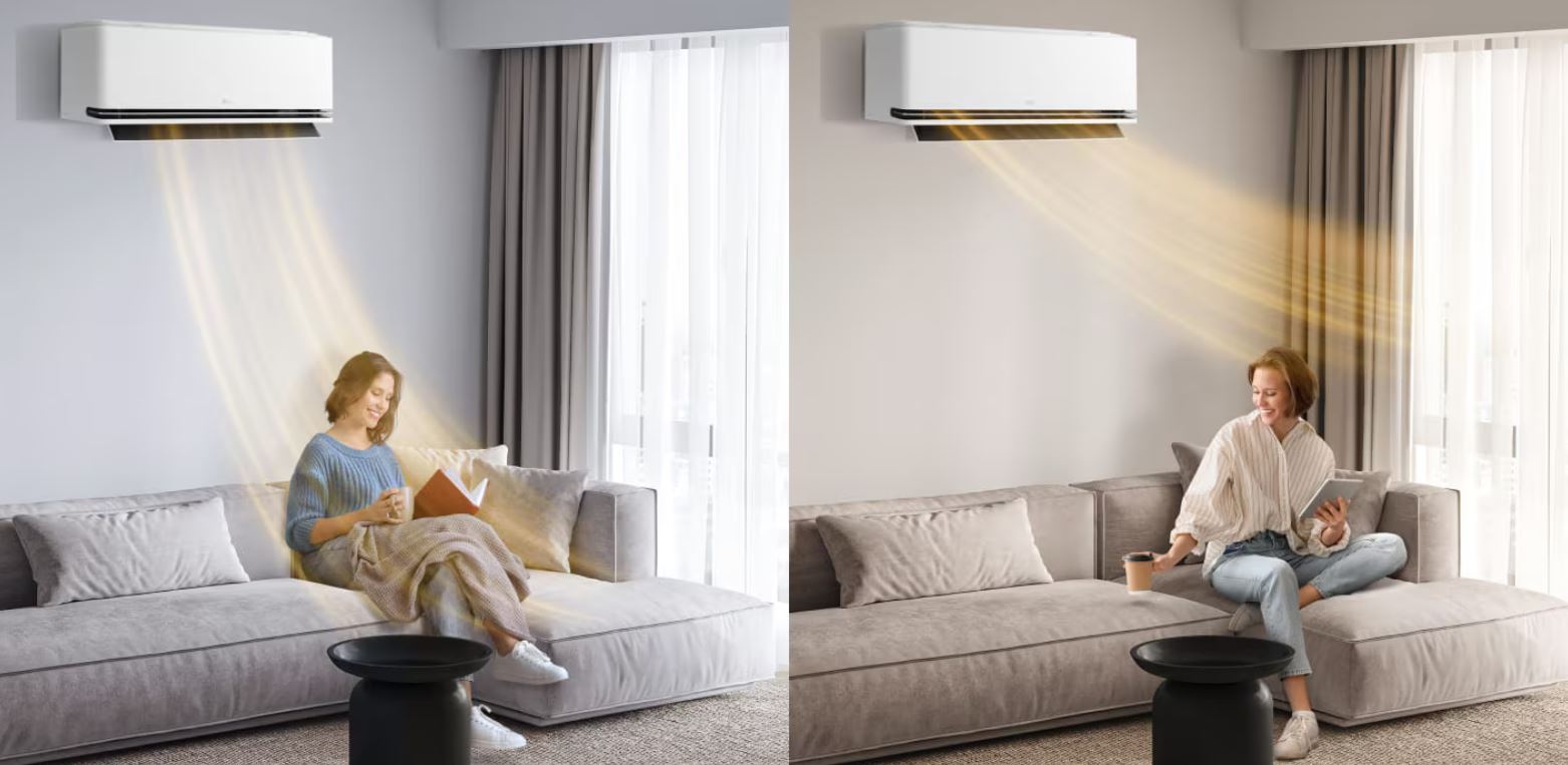 AI Air sleduje vaši polohu, monitoruje teplotu a upravuje proudění vzduchu, aby vám zajistila příjemné prostředí.