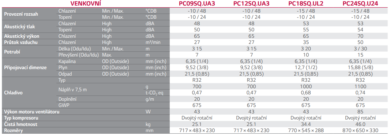 - Maximální vzdálenost venkovní a vnitřní jednotky do 3m - délka chladivového potrubí a napájecích a komunikačních kabelů do 3m