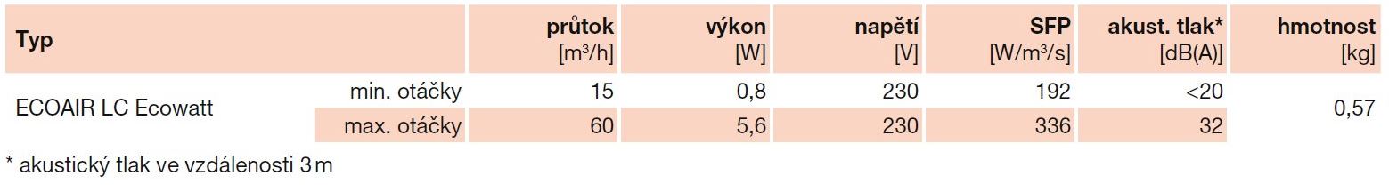 ECOAIR DLC ECOWATT má velmi nízký příkon rovnající se slabé LED žárovce: 0,8 - 5,6 W díky EC motoru.