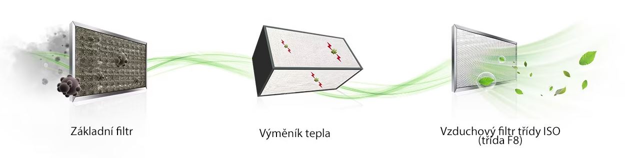 Rekuperace nabízí řadu technologií pro úsporu energie. Výměník tepla šetří až o 24 % energie více než přirozené větrání a spolupracuje s dalšími prvky. Celkem tak nabízí celkovou úsporu energie až 40 %.