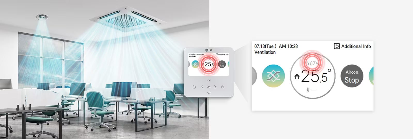 Rekuperace LG o 4,6 % ročně snižuje energetické ztráty díky automatickému ovládání rychlosti ventilátoru podle hladiny CO2.
