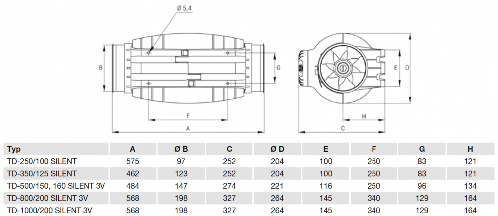 Ventilátory typu TD SILENT jsou diagonální ventilátory, určené k montáži do kruhového potrubí. Jsou určeny k dopravě vzduchu bez mechanických částic, které by mohly způsobit abrazi nebo nevyváženost oběžného kola. Ventilátory nesmí být vystaveny přímému působení vlivu počasí. Ventilátory je třeba skladovat v krytém a suchém skladu. Ventilátory jsou vyráběny za nejpřísnější výrobní kontroly v systému ISO 9001.
