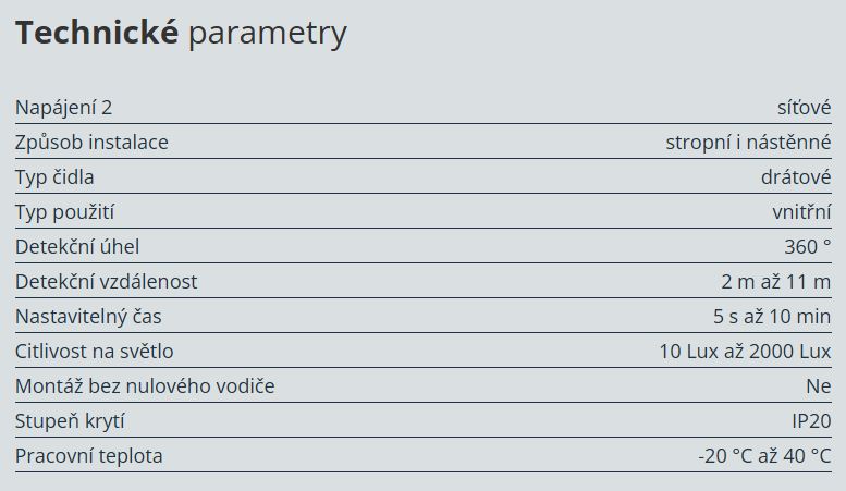 Stropní, nástěnné pohybové čidlo (uvnitř 3 sensory) pro spínání většiny elektrických spotřebičů, včetně ventilátorů.
